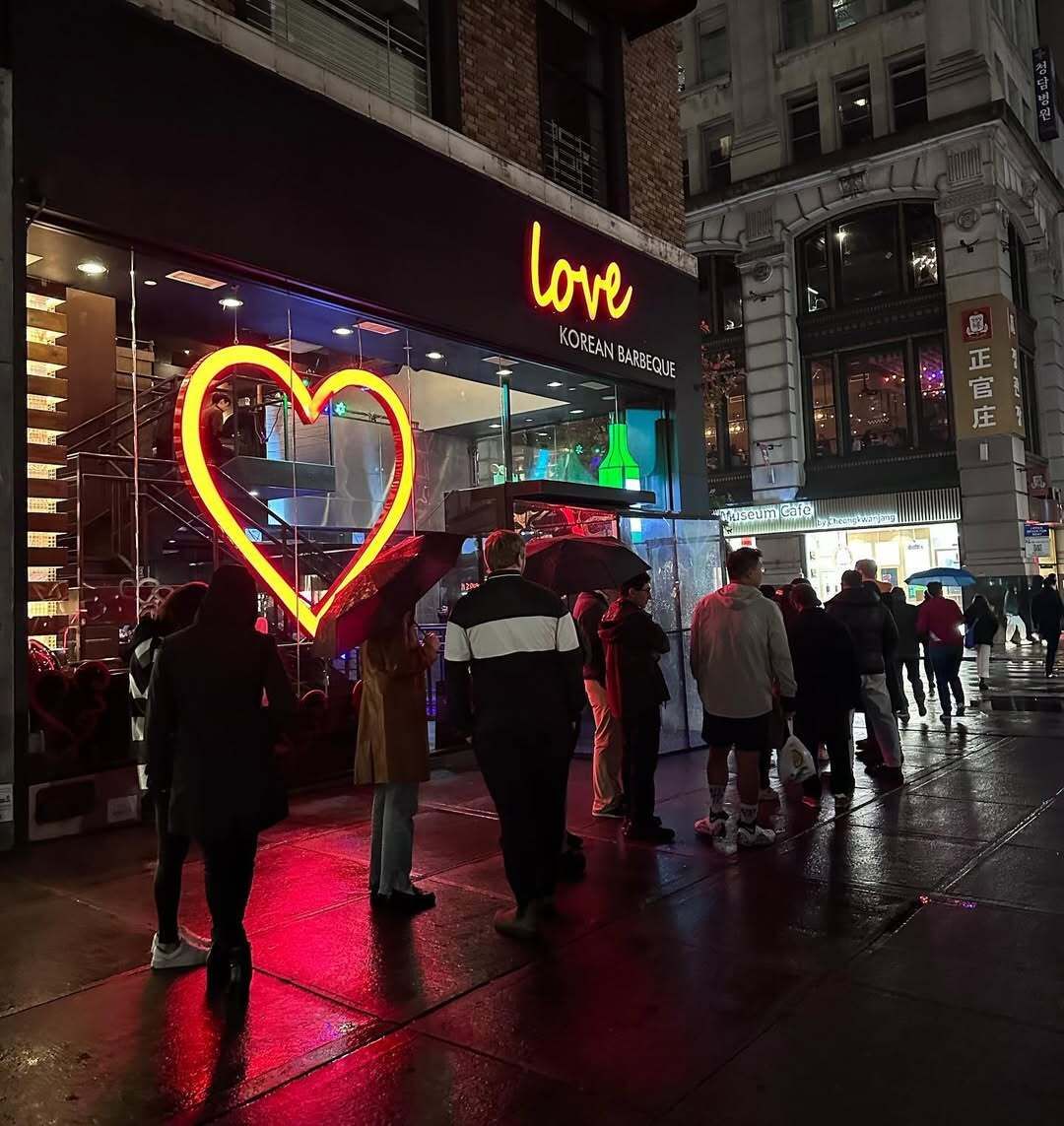 LOVE Korean BBQ isn’t just another K-Town grill spot – it’s an experience. Opened on Valentine’s Day 2020, it’s flashy, ambitious, and built to impress. With glowing neon signage, live DJs on weekends, and a multi-floor layout including a basement bar and private upstairs dining, it fuses Korean BBQ tradition with Manhattan nightlife energy.