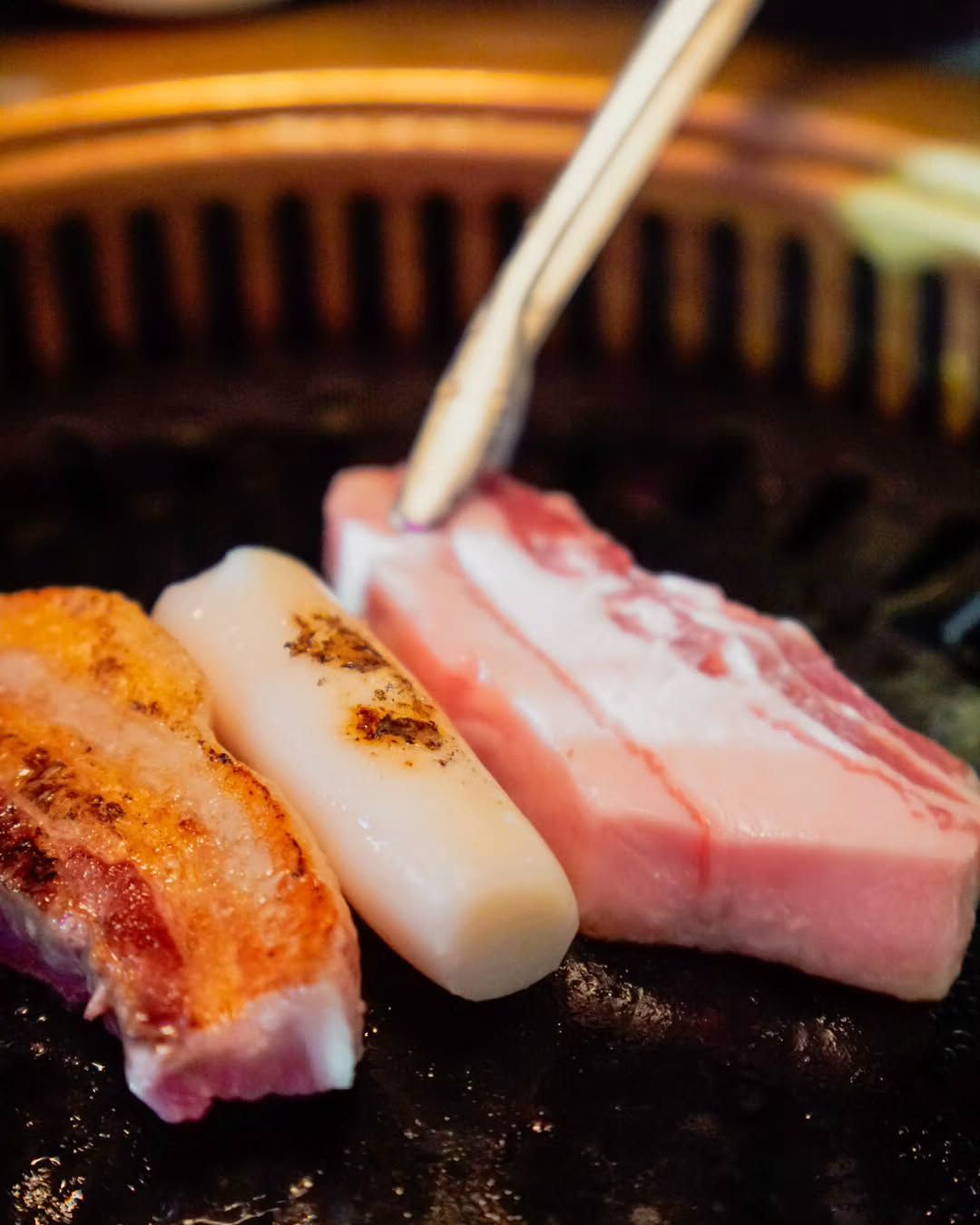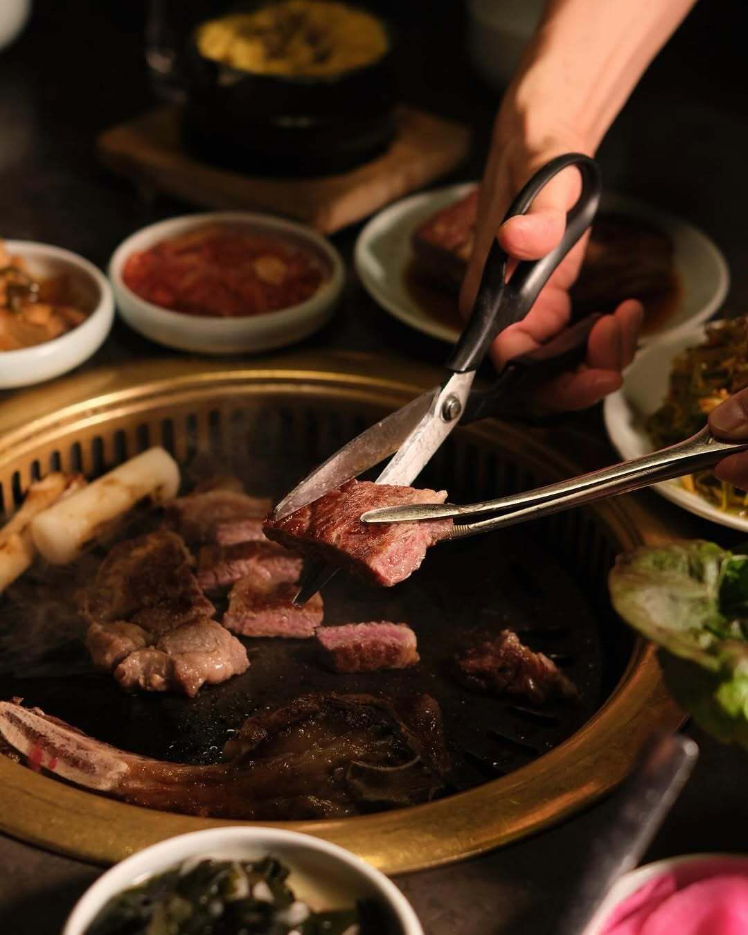 Meet goes full tableside. Forget fumbling with frozen meat – servers do the grilling for you. As the restaurant’s own FAQ says, “our well-trained servers grill a variety of premium meats to your preference”. In practice the staff lives up to the hype. Multiple reviewers name-drop servers (Larry, Andre, etc.) for being “knowledgeable” and constantly flipping meat at the right moment. Infatuation’s write-up jokes that you can simply “sit back, let a server handle grilling, and proceed to make fun of your friend whose glasses keep getting fogged up from the steam”. In short: you focus on the soju toasts and banter while the grill captain handles the rest.
